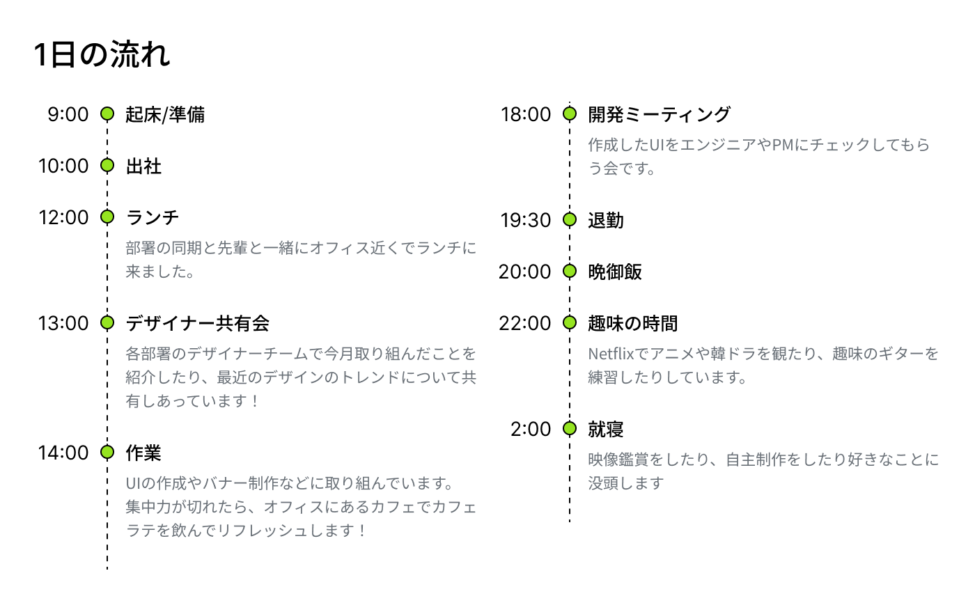 - 自分が担当した施策が世に出て、実際に多くのユーザーに使われている瞬間にやりがいを感じます。リリース後、SNSやコミュニティでユーザーの声が届いた時、「自分のデザインが誰かの日常に作用している」と実感でき、胸が熱くなります。また、施策がスピーディーにプロダクトへ反映される環境だからこそ、仮説検証と改善を高速に回せる面白さも感じています。