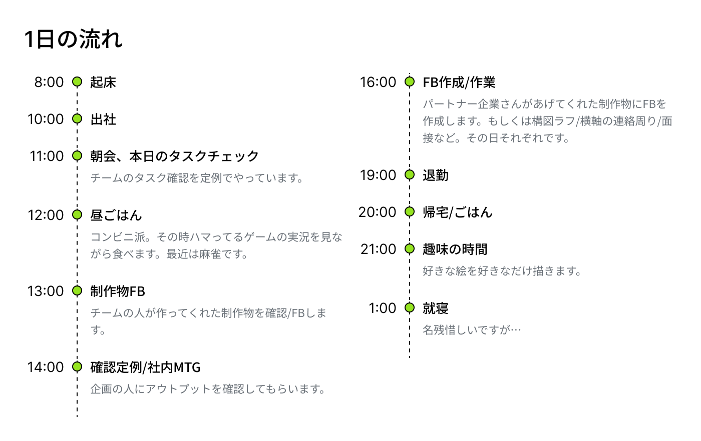 - 現在の仕事内容について教えてください