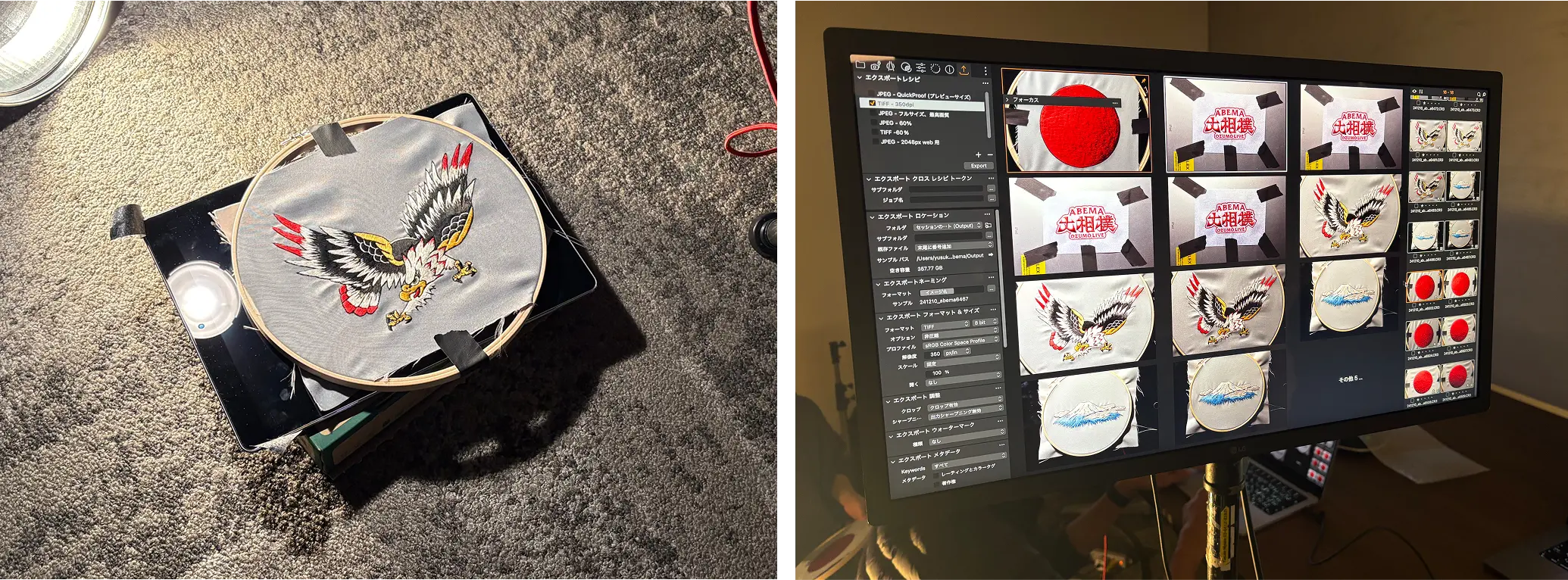 刺繍の撮影